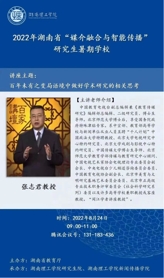 本站讯 8月24日上午,中国教育电视台副总编辑兼《教育传媒研究》编辑部总编辑、国务院政府特殊津贴专家张志君教授作了题为“百年未有之变局语境中做好学术研究的相关思考”的学术讲座,威廉希尔体育官网副经理肖涛教授主持。
